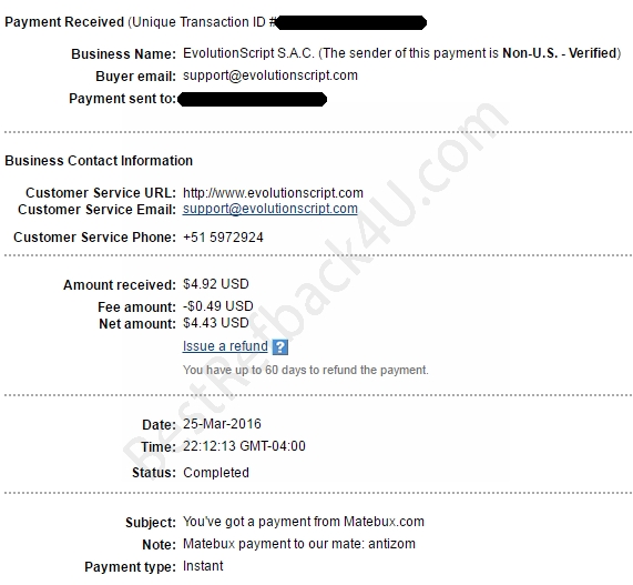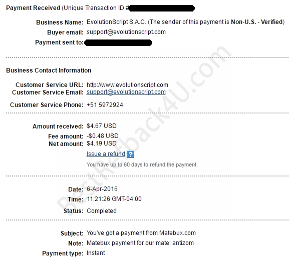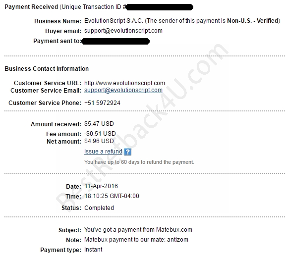 Below is our proof of Refback site payment, this is a great pleasure of our teamwork. If you haven't