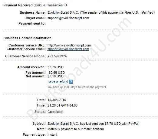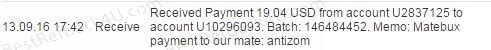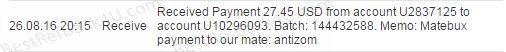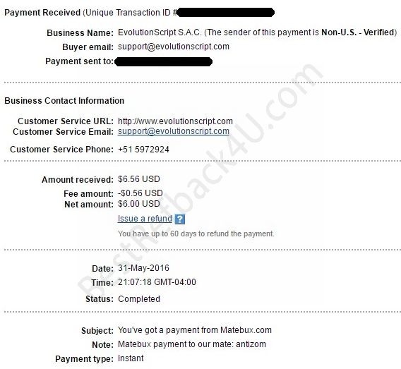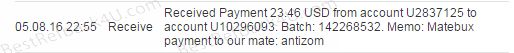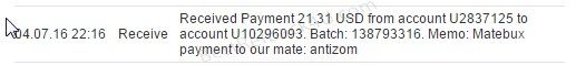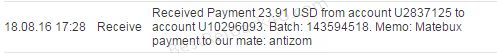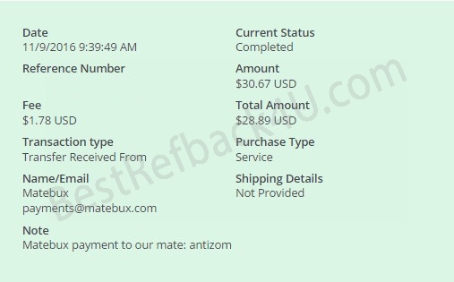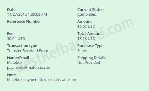 Payment From MateBux